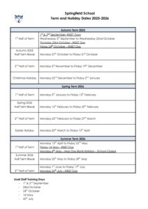 Springfield Term Dates 2025/2026